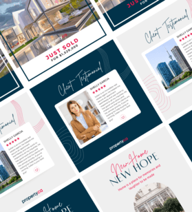 A Canva account is created for agents and stocked with ready-made social media posts to share on social media, just download and post!